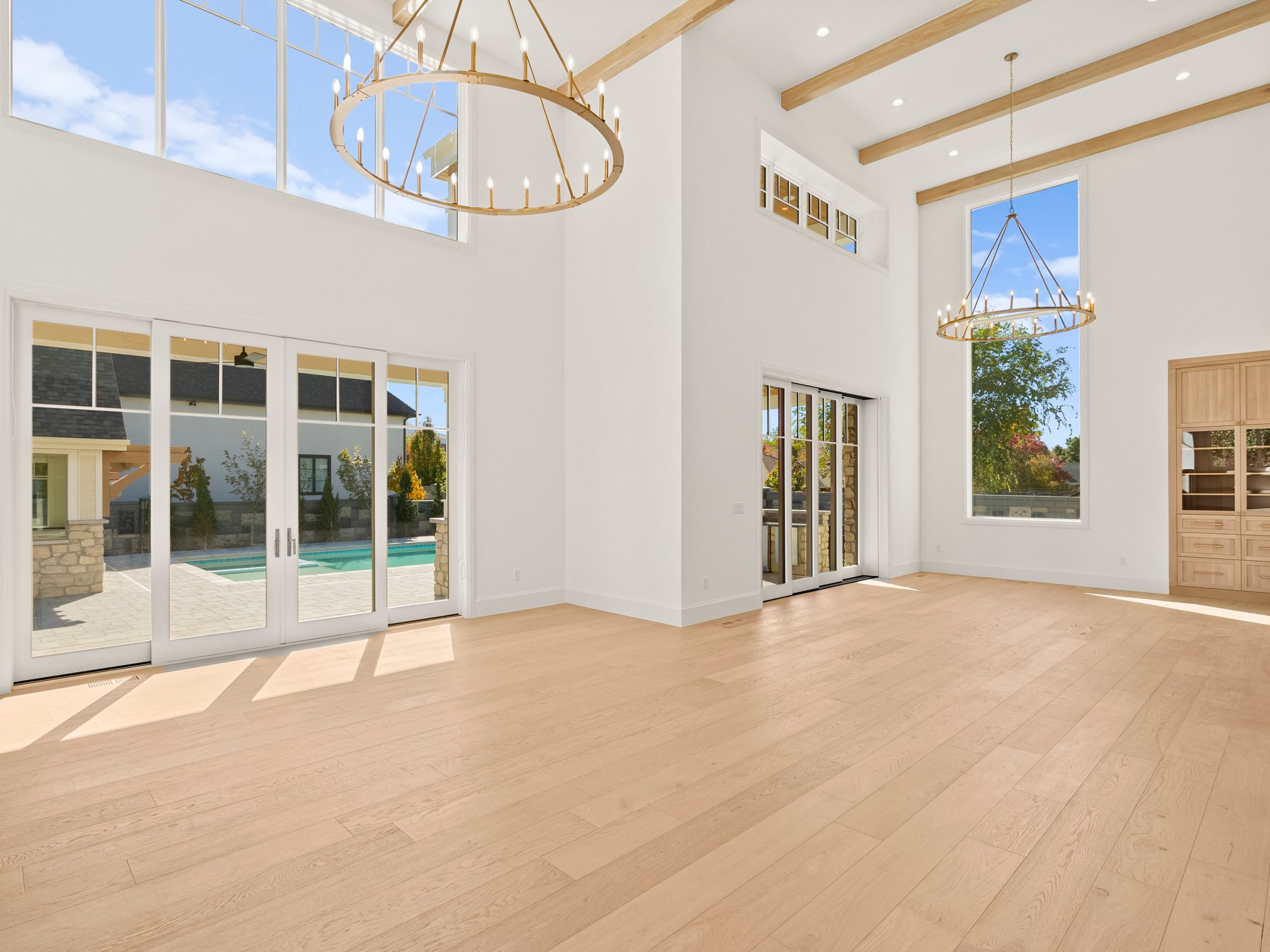 Absolutely Stunning Draper Home located in the Viking Court Subdivision! This 2-story masterpiece is fit with all that you would expect in a Luxury home! The interior features White Oak flooring throughout most of the main level & the stairs, as well as White Oak Beams in the expansive 10′ – 20′ ceilings. The Kitchen will have Inset Cabinetry w/ Quartzite Countertops. The Primary Suite is expansive and features a private covered patio! It’s Bathroom has an oversized shower, free-standing tub, heated tile floors & a nicely appointed walk in closet w/ built in cabinetry & laundry. Upstairs you will find 4 bedrooms each with their own bathrooms & custom closets. The lower level is full open & bright thanks to all of the light wells! It is designed for entertaining & has room for a golf simulator or theatre room. Step out of your family room through the fully opening pocket door to your outdoor living area- The entire south end of the home is situated under a covered paver patio with a seating area, dining area & outdoor kitchen! This amazing outdoor space leads you to a full size swimming pool with an integrated hot tub and pool house. The balance of the yard will be professionally landscaped, fully fenced and feature paver drive and entry. The oversized 4-car plus garage will fit all of your toys! Call today to arrange a private tour!